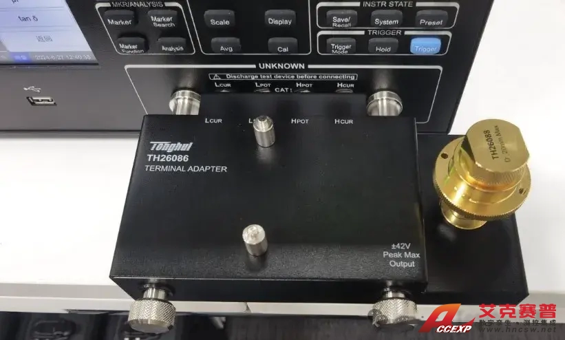 1、将TH26086磁导率测试夹具底座规范、正确的安装在TH2851-030上面,然后进行相位、开路、短路、负载校正;