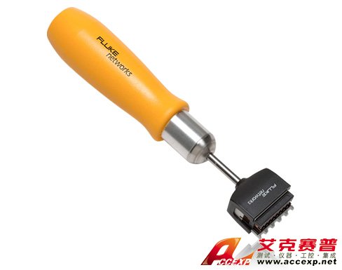 Fluke Networks 的 D-Impactor™ 5 线对打线工具可轻松在一个110块上切割和端接五对铜缆。这一坚固易用的工具不仅节省时间,而且将手的受力减至最小。